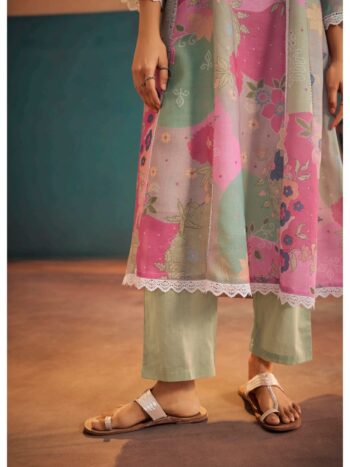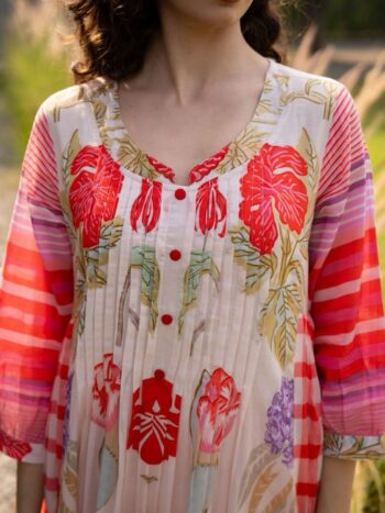 I usually avoid sets with prints, but this one was so graceful. The mandarin collar and soft mulmul fabric make it stand out. You can tell it’s designed with care.
